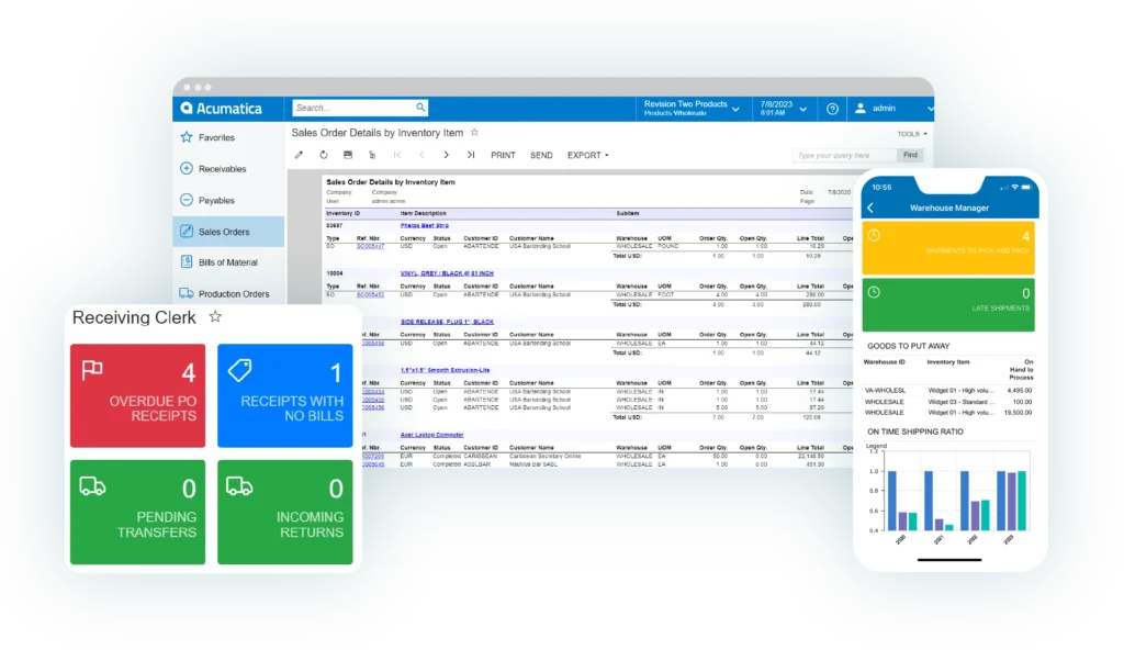 Acumatica’s WMS enhances the Distribution Edition by integrating barcode scanning, providing instantaneous insights into inventory management. Accessible via mobile and fortified by the cloud, it streamlines warehouse functions and ensures data reaches decision-makers fluidly.